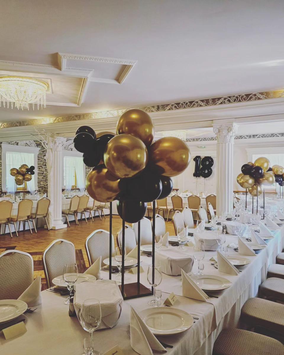 Ścianki balonowe dają niepowtarzalny efekt dekoracyjny sali bądź dowolnej przestrzeni. Wykonujemy zarówno dekoracje balonowe w postaci ścianek, girland jak i dekoracje balonowe stołów.