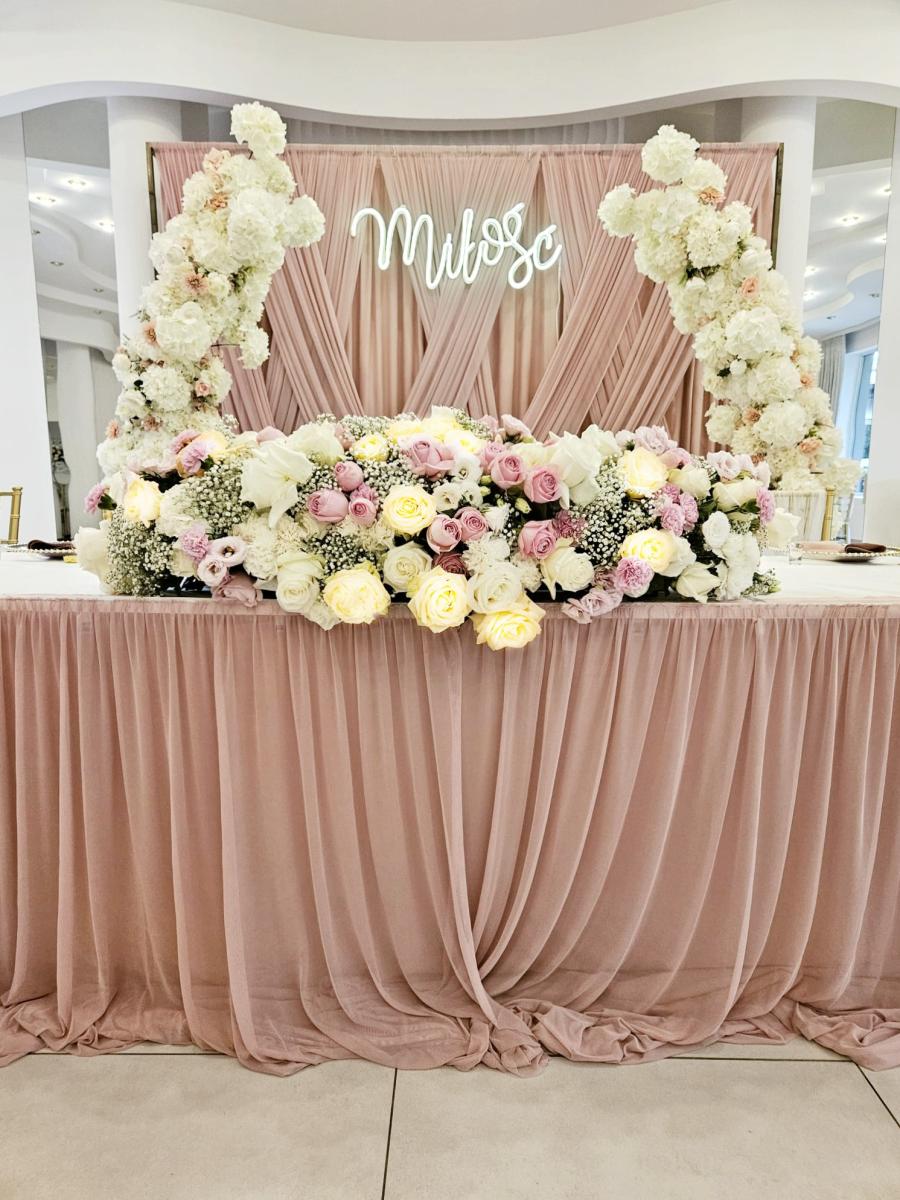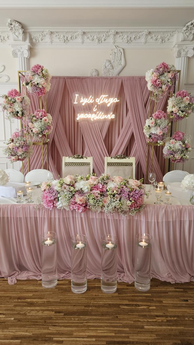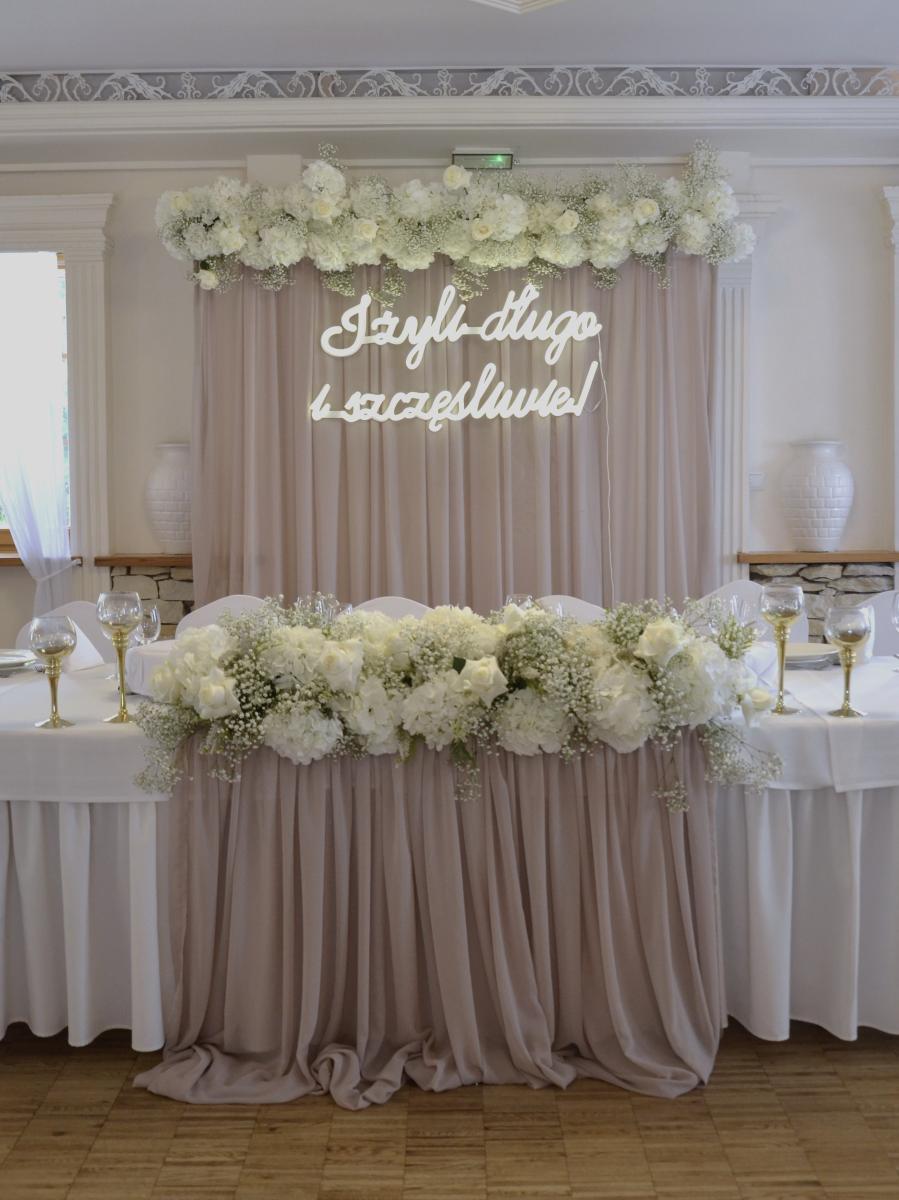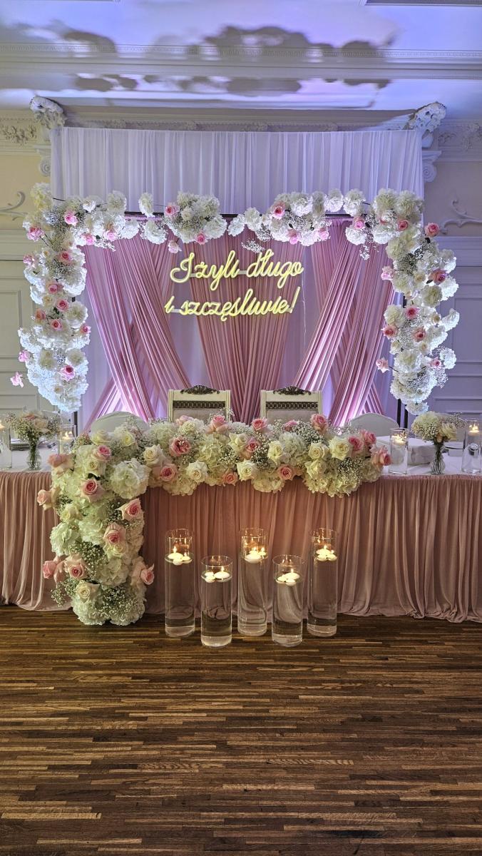 – Możecie u nas zamówić ściankę ślubna jako tło za stołem Państwa Młodych, na której to kwiaty oraz kolorystyka będzie spójna z tą która oferuje sala.