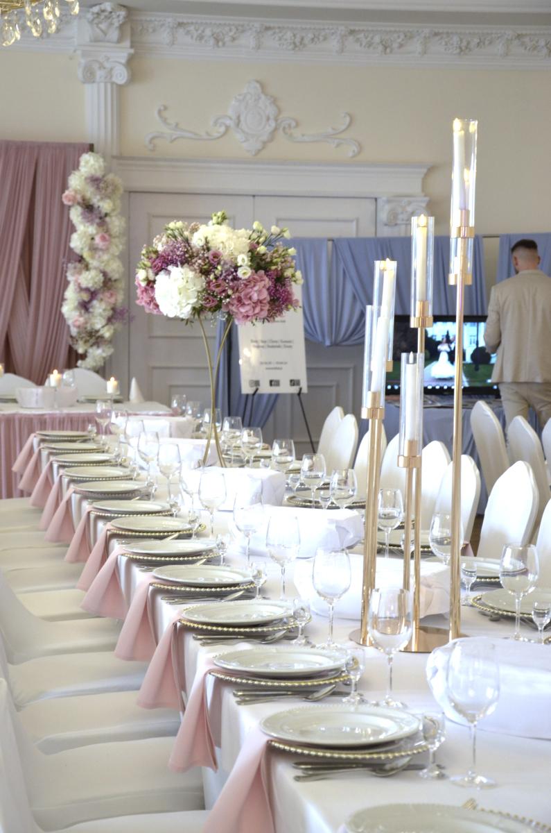 – Możemy wykonać dla was dekorację stołu Państwa Młodych, tak aby go bardziej wyeksponować. w naszej ofercie świeczniki, świeczki, niskie kompozycje kwiatowe, obrusy, skirty cekinowe oraz materiałowe.
